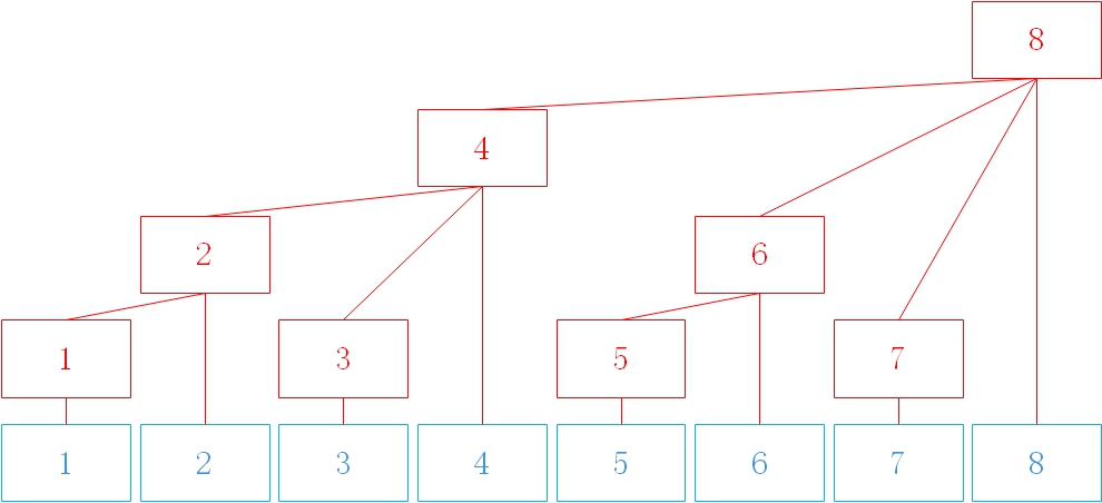 不难发现长得确实很像树如果现在要求前 $i$ 项的和,那么就可以通过每次减去 $lowbit(i)$ 得到的 $c_i$ 求和,具体来说就是 $sum[i]=c[i]+sum[i-lowbit[i]]$。